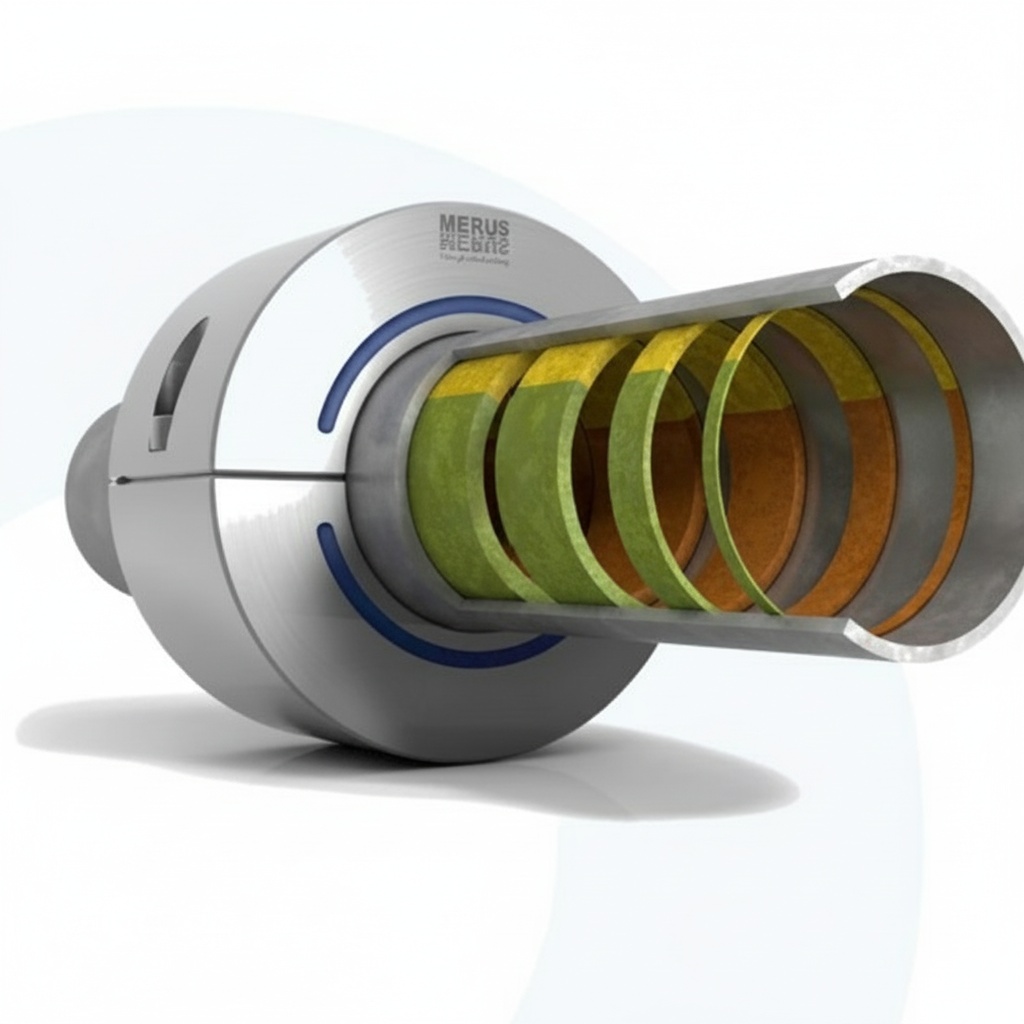 Physical water treatment using targeted oscillation fields. Installed externally on the pipe, the Merus Ring modifies water behavior without direct contact or chemical additives.