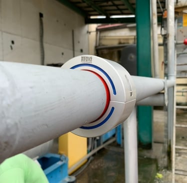Os anéis Merus são instalados externamente sobre a tubagem, sem corte de serviço e sem qualquer contacto direto com a água. Isto é particularmente relevante em ambiente hospitalar, onde qualquer intervenção intrusiva na rede de AQS implica riscos operacionais e de compliance.